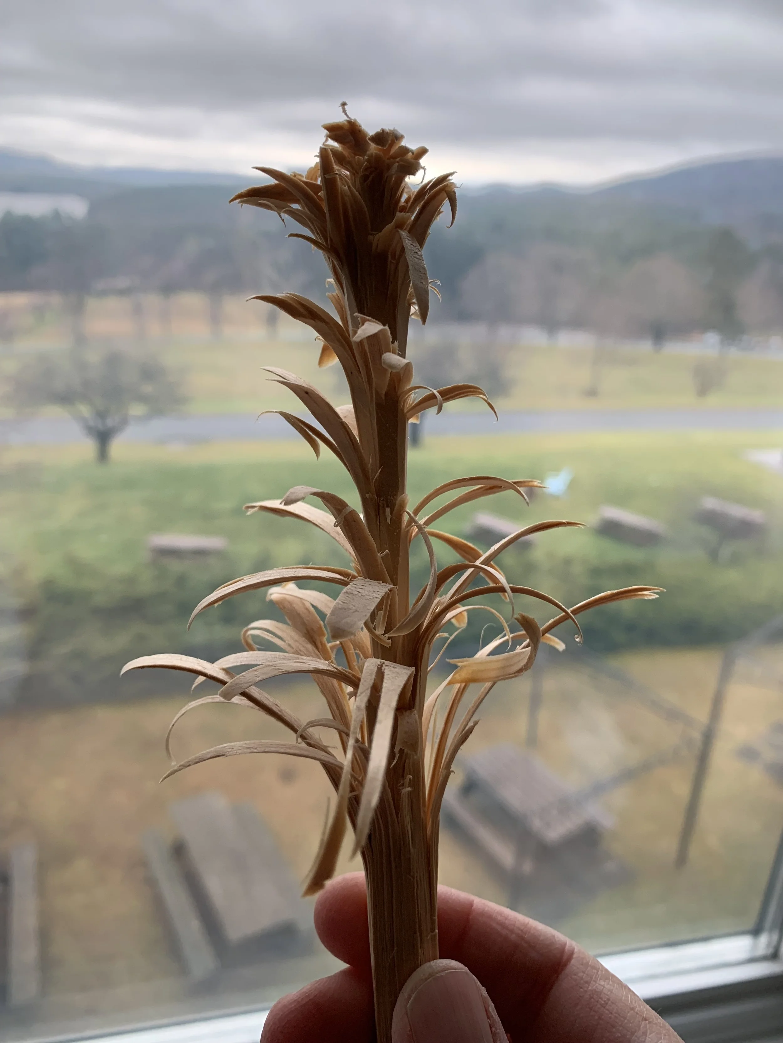 We foraged in the wet woods to collect fuel for the fire and used knives to create “feather sticks” (fire starter) out of white cedar. Having never done this before, I discovered that I had an artistic knack for whittling and created these rather decorative pieces of fire starter. In the spirit of dual purposing, and as suggested by DJ Cavern, I intend to douse them in essential oils and dye them to make homemade potpourri.