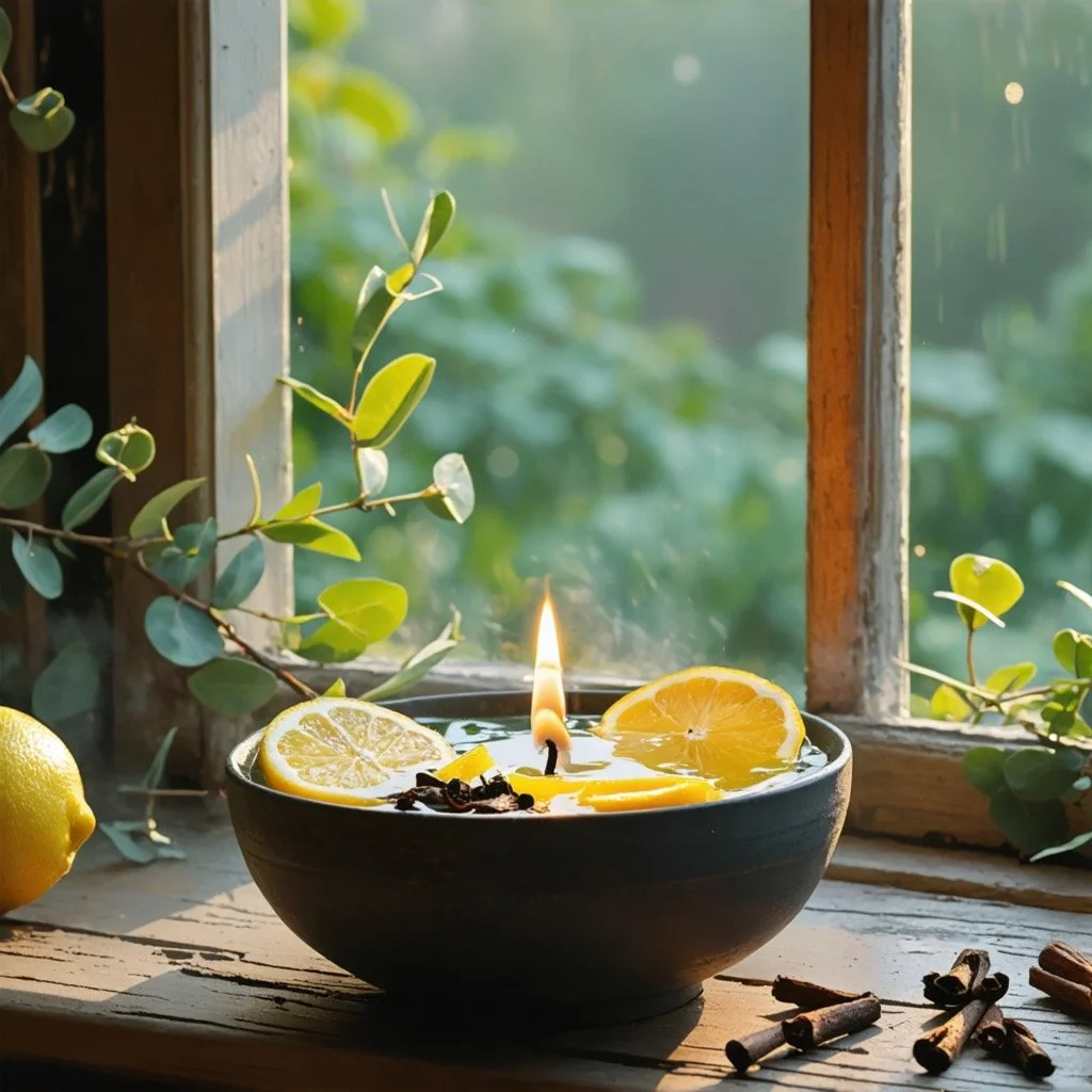 Simmer lemon peels, eucalyptus, and cloves in water to cleanse the air naturally. AI generated image by Dani