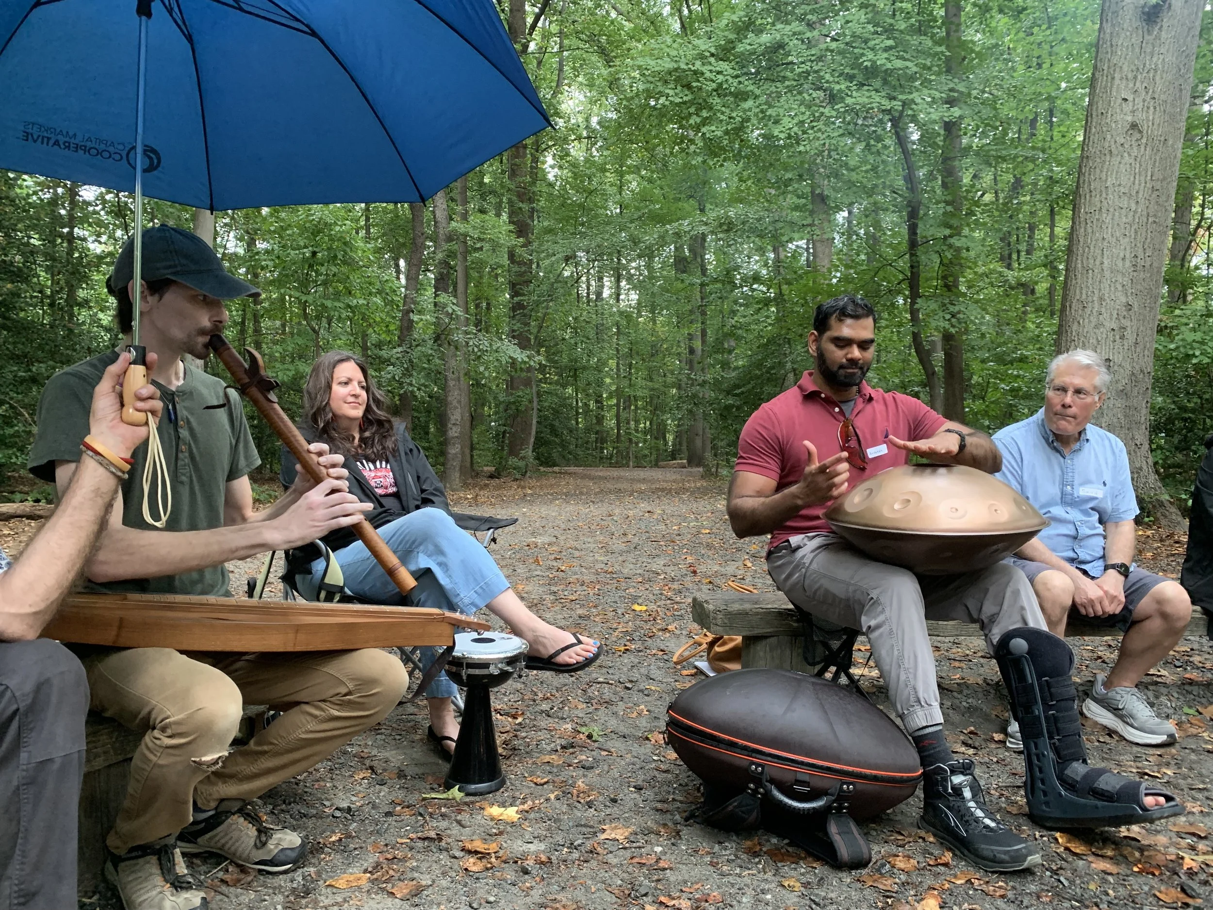 Despite the gray skies and rumbling storms, nearly 30 of us gathered together yesterday beneath the trees at Lacey Woods Park, wrapped in the soft embrace of rain. Thunder cracked in the distance, but our circle was steady, rooted, and safe in the shelter of community. It was a beautiful reminder that even in unsettled weather — both literal and metaphorical — we can find harmony and connection by simply showing up together.