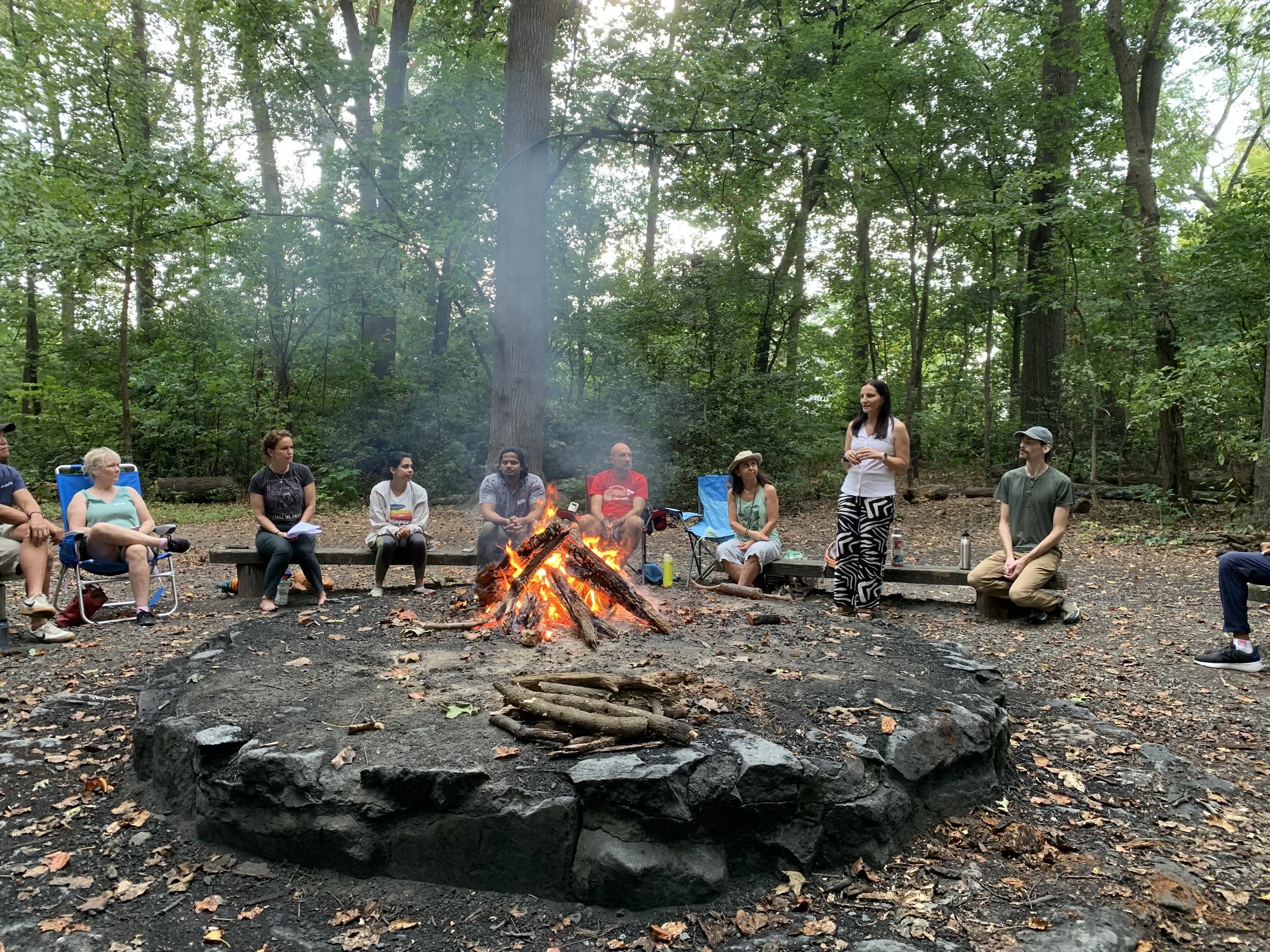 We opened in the spirit of Mabon, the Autumn Equinox, reflecting on balance, gratitude, and the sweet weight of the harvest season. The Harvest Moon — a fiery, blood-tinted full moon arriving on Sunday — called us to honor both abundance and release. Through guided breathwork with Milena, we rooted into presence; through Nikki’s energy practice, we tapped the subtle fields of the heart and practiced compassion. At the fire, we named what no longer serves and welcomed what we wish to call in. A mindful walk and closing meditation rounded out the evening, before drifting into music, conversation, and laughter.